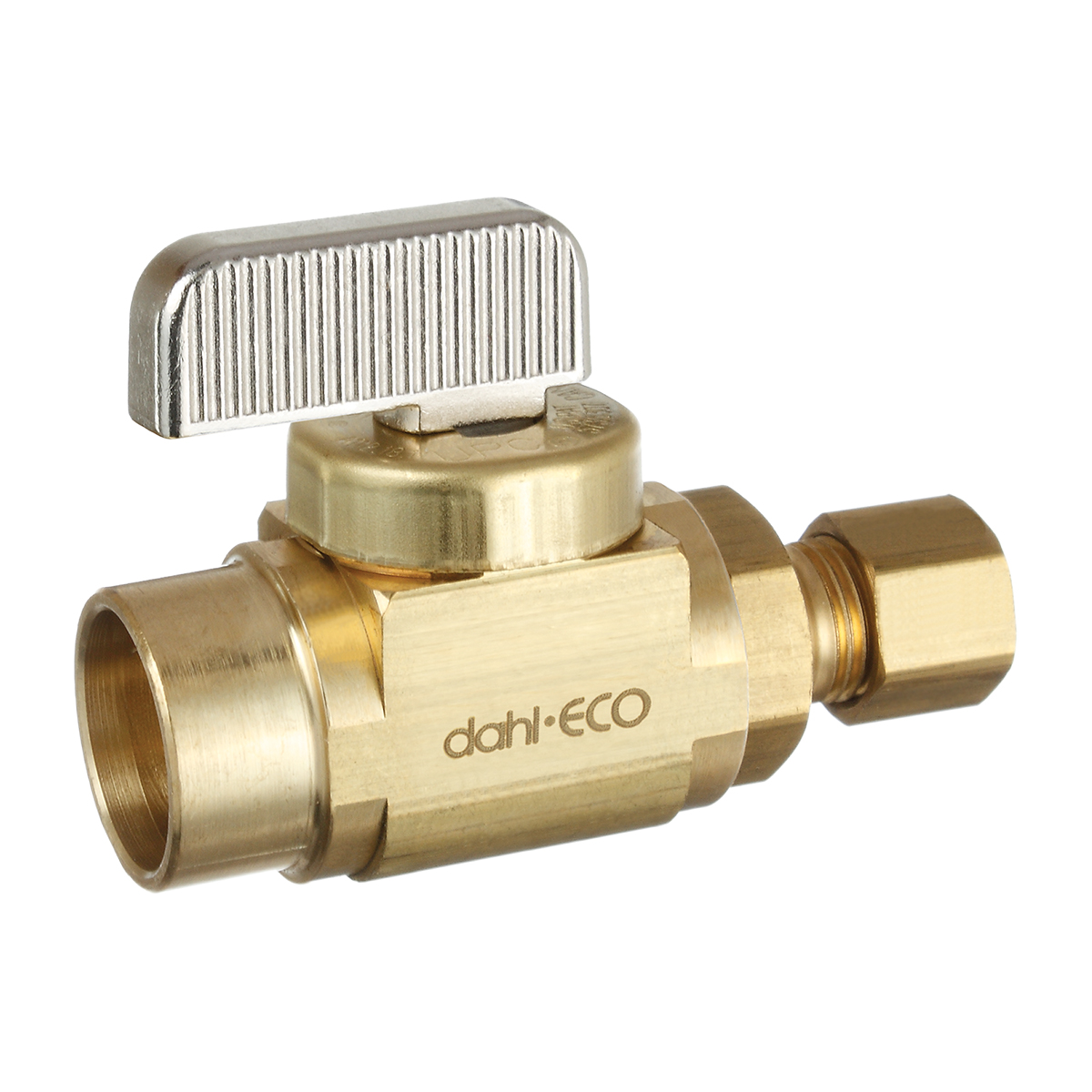 Rough Brass Finish. 1/2 inch OD Inlet x 1/4 inch OD Outlet. Female Solder x Compression Connection. Plastic Handle Operation. Straight Pattern.