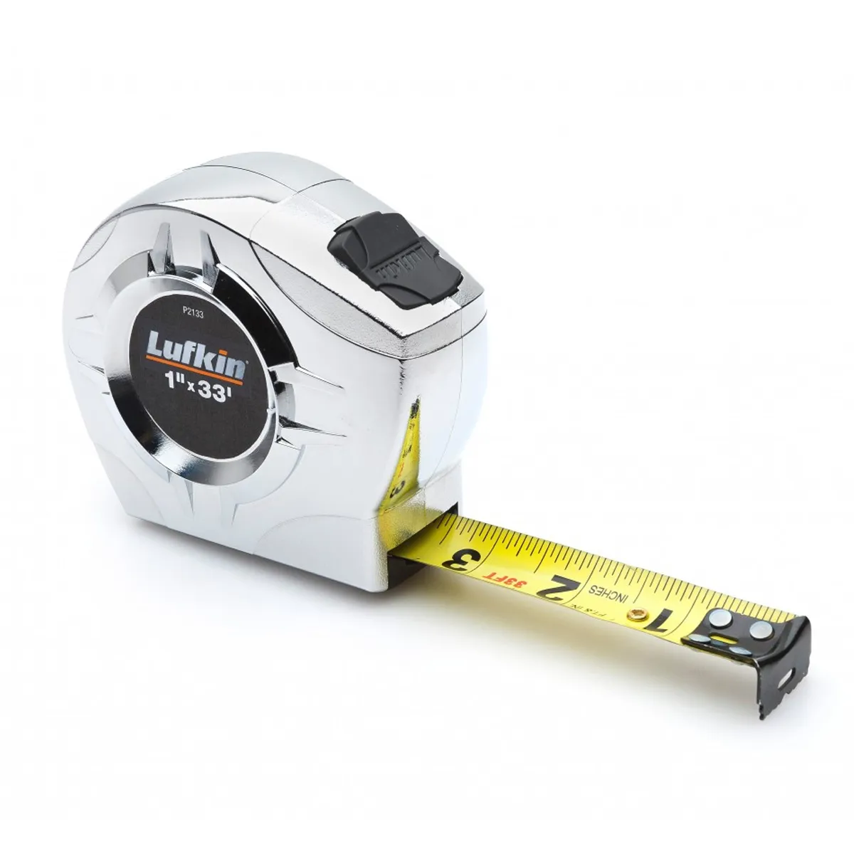 Case designed to fit perfectly in the hand. Lightweight; high strength chrome finished case. Fits easily into most tape holsters. Bright yellow blade has clear easy-to-read numerals. Toggle lock is positioned for convenient operation and holds the blade securely in any position. Virtually unbreakable Quad Hook®; four rivets for extra strength (1in blade only). Cushioned blade return. Removable belt clip. Blade Style: A30.