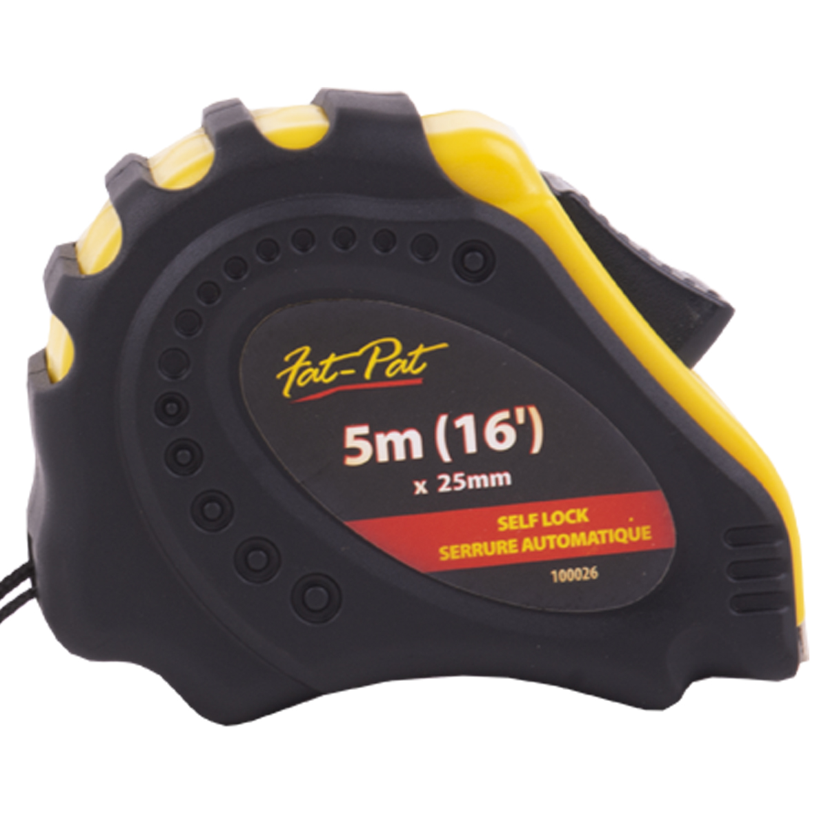 Dual-scale tape measure with self-locking mechanism for ease of use.
