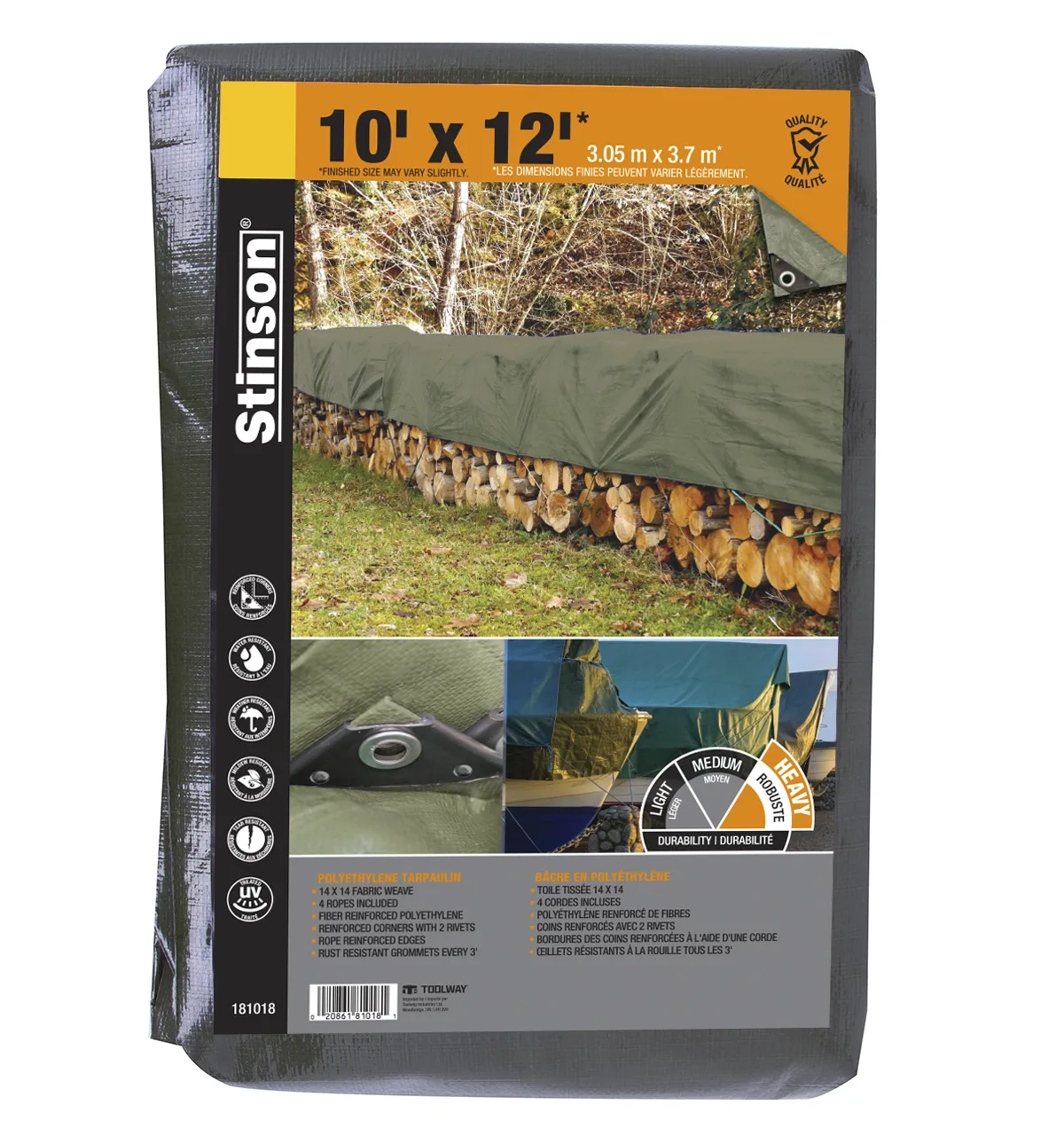Heavy Duty Woven coated PE tarpaulin;Waterproof With 14x14 per square inch weave countwelded at four hems and reinforeced with PP band inside; Aluminium eyelets punching every 3F;strong corner reinforcements.