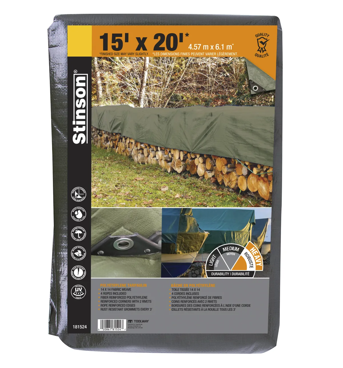 Heavy Duty Woven coated PE tarpaulin;Waterproof With 14x14 per square inch weave countwelded at four hems and reinforeced with PP band inside; Aluminium eyelets punching every 3F;strong corner reinforcements.