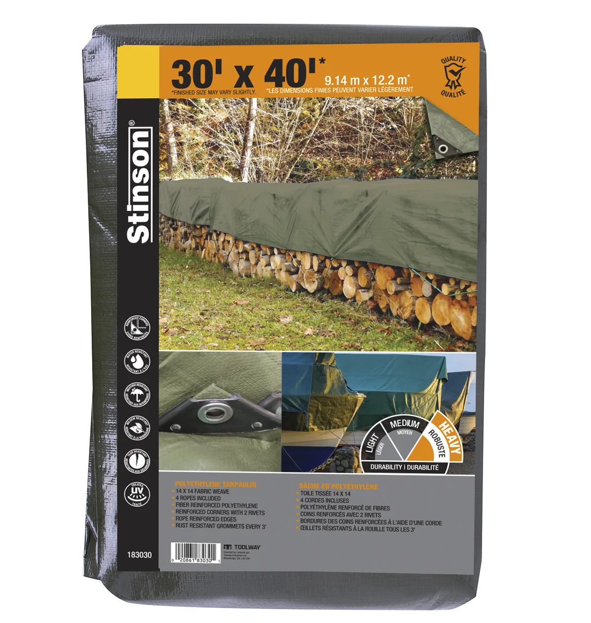 Heavy Duty Woven coated PE tarpaulin;Waterproof With 14x14 per square inch weave countwelded at four hems and reinforeced with PP band inside; Aluminium eyelets punching every 3F;strong corner reinforcements.