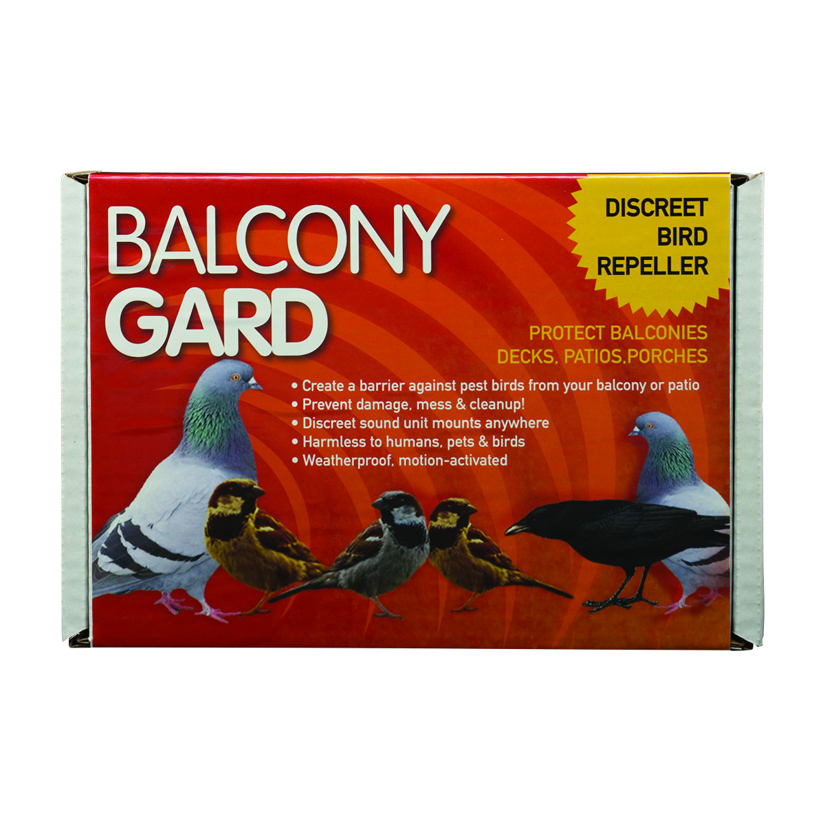 Chase birds from your balcony; patio; building; prevents damages. Waterproof; works with electric or batteries.