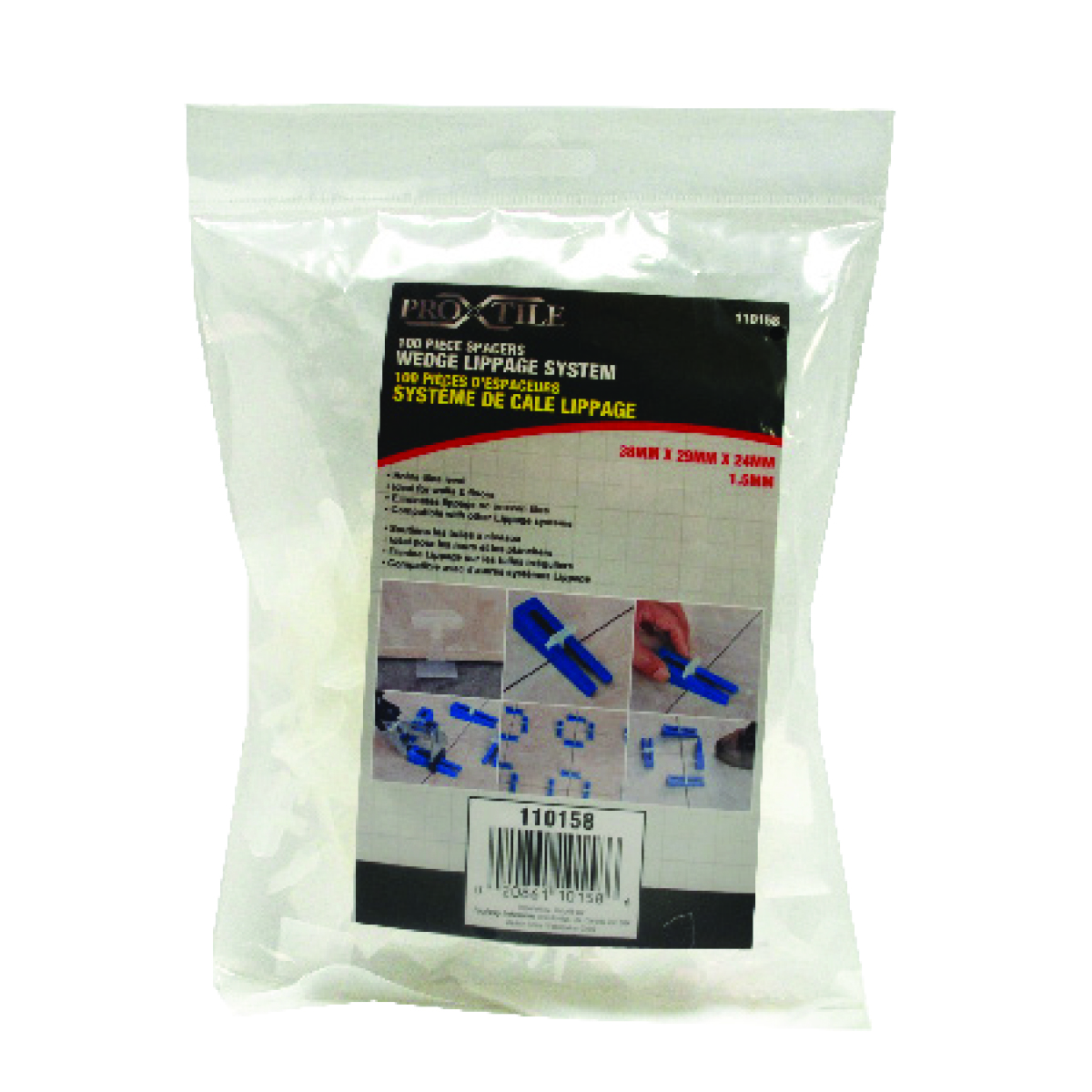 Save a great deal of time and money during your next tile installation with the ProXTile® Levelling System. These clips and wedges are the best solution for eliminating tile lippage in all floor or wall tile projects. When used with ProXTile’s tile Levelling floor pliers and Levelling wedges; this system prevents tiles from moving or warping during the curing process ensuring incredible looking results every time. Whether you are a professional installer or a DIYer; this system will increase the time it takes to complete a project and reduce installer fatigue. The clip’s easy snap-off design allows you to quickly break them off making your tiles ready for grouting in seconds.