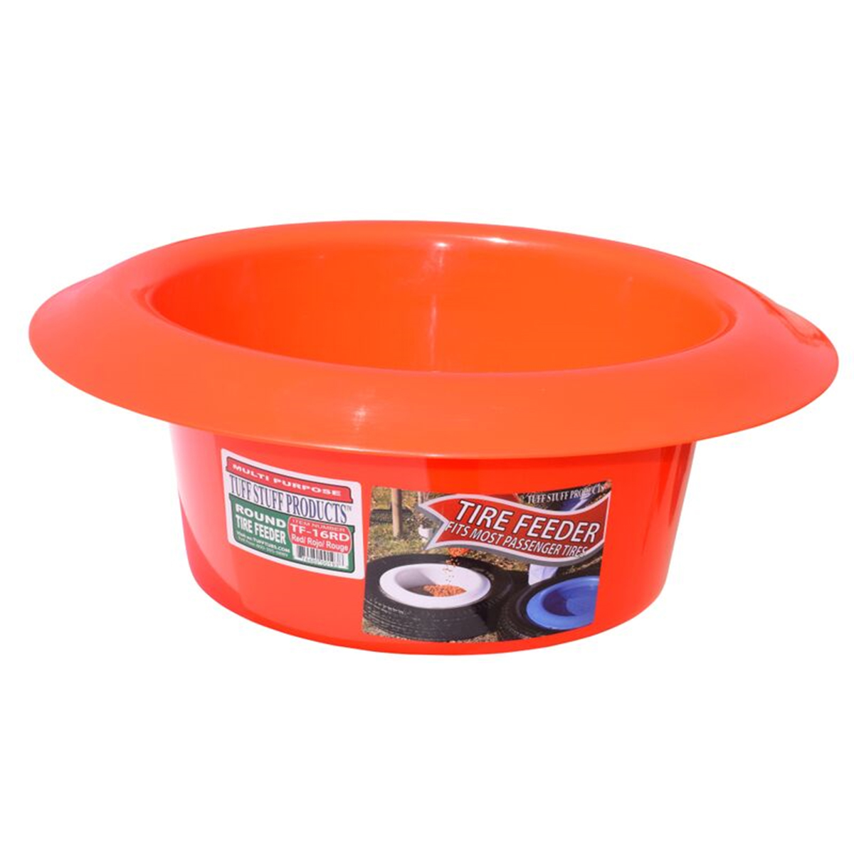 - 16 qt. Round Tire Feeder Bowl Tire Feeder Fits 17-20 inch rubber tire Quality selection for everyday pet needs Assured hygiene and care for pets Specifications.
