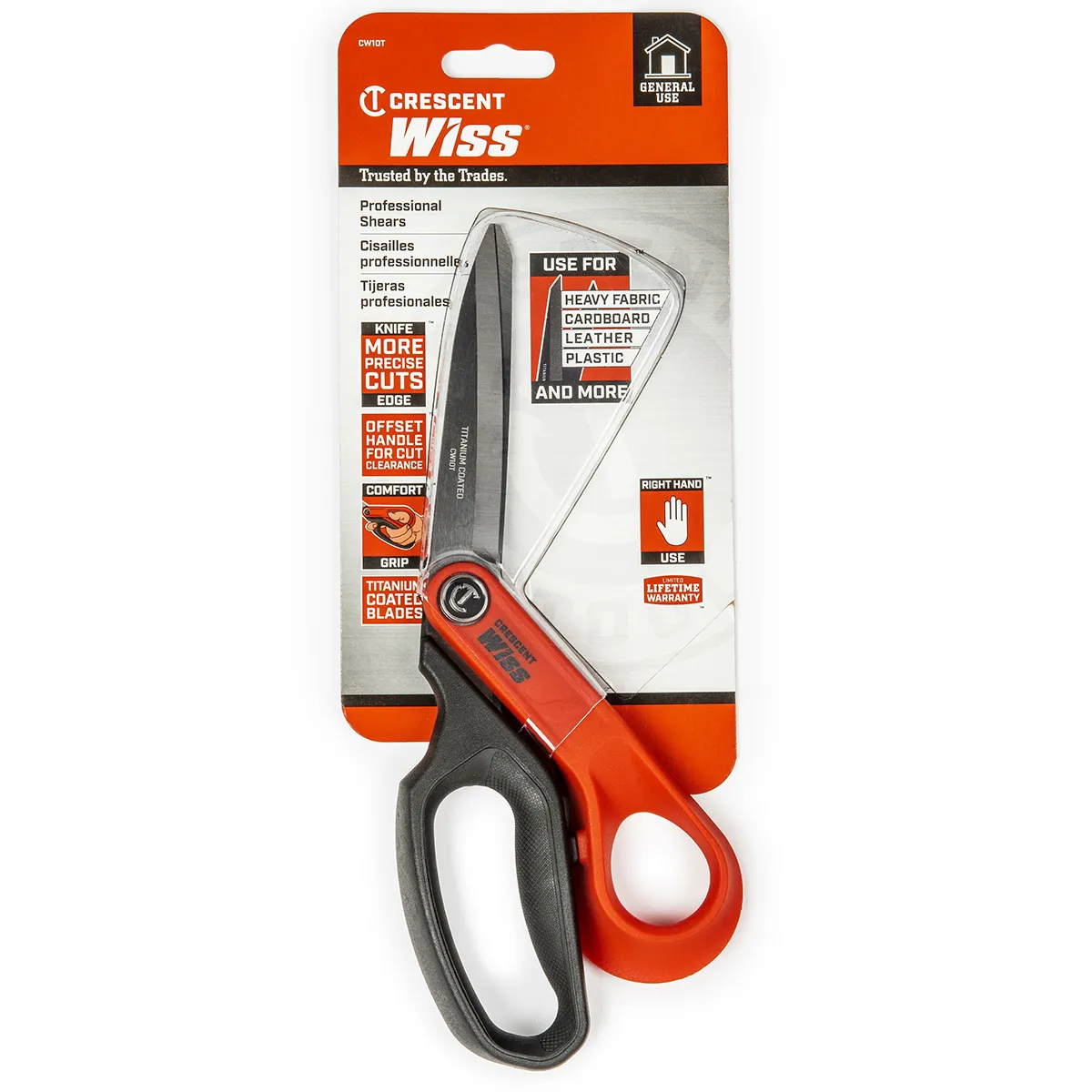 Crescent Wiss® Professional Shears feature premium-grade steel blades with a titanium coating that is three times harder than steel for extra durability and longer edge life.