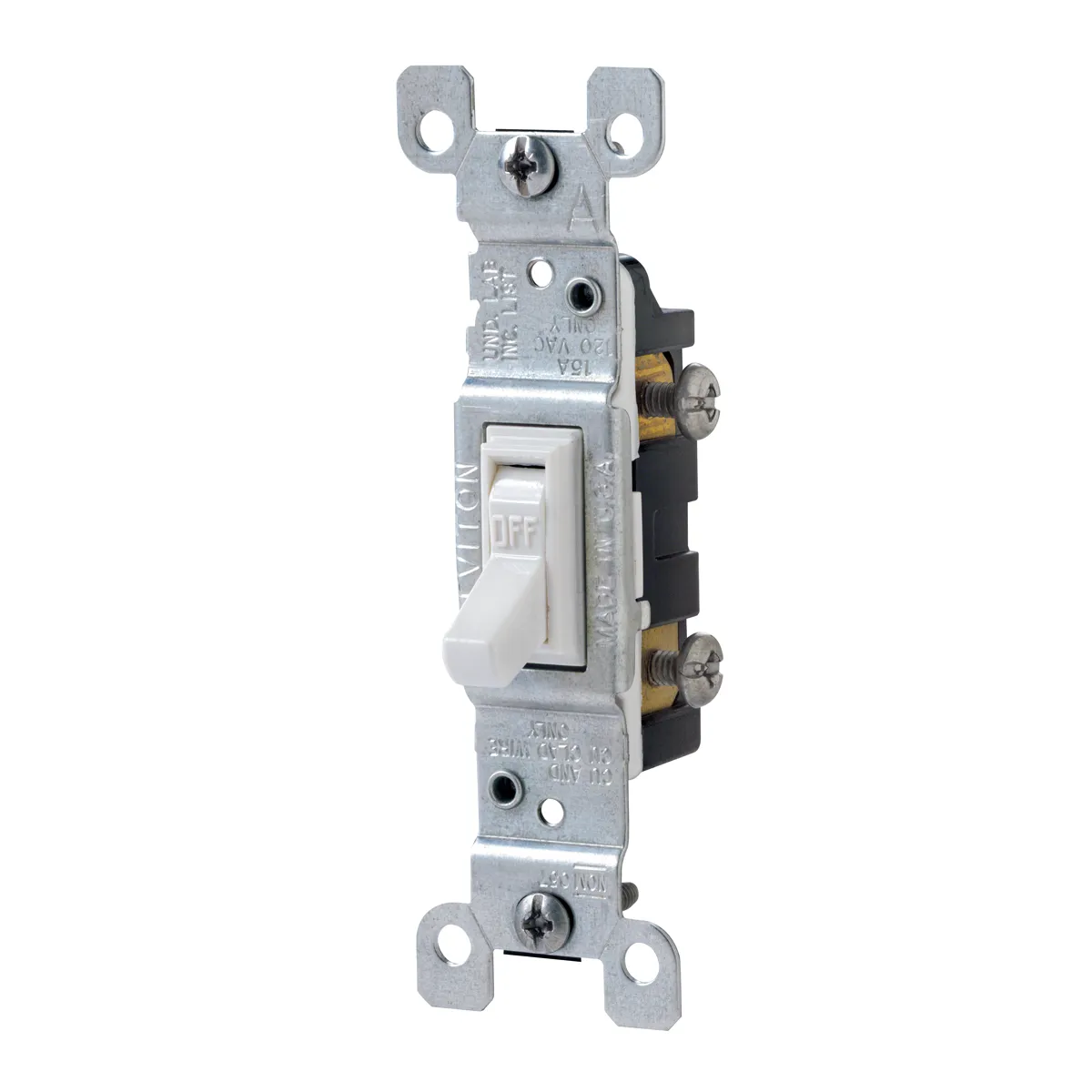 • Toggle Framed Single-Pole AC Quiet Switch.