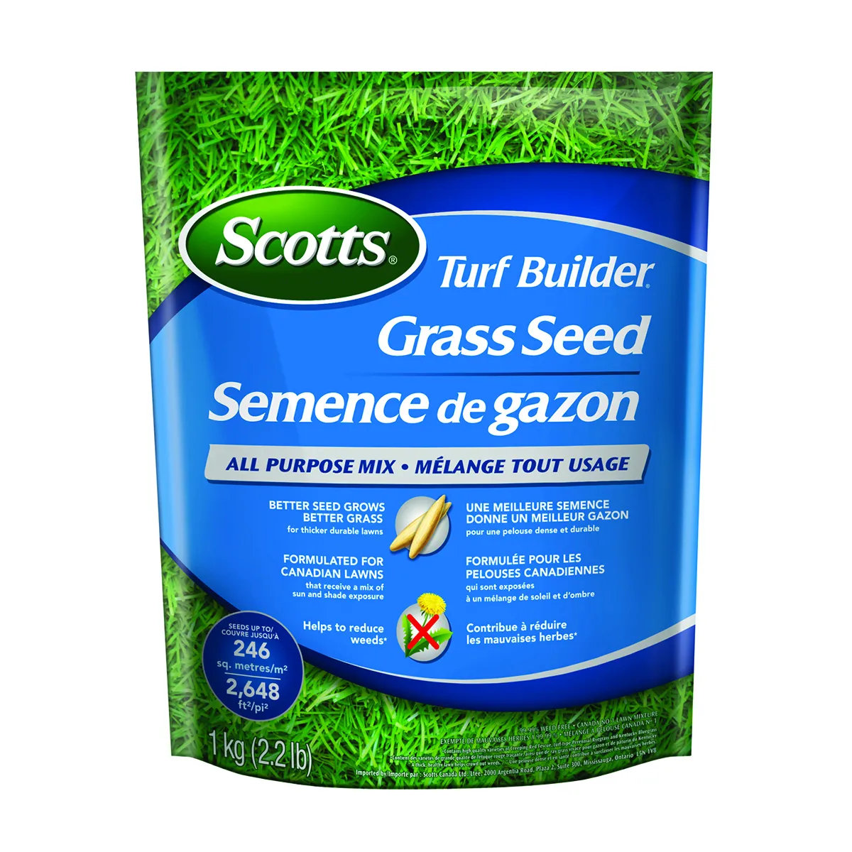 To make a good lawn better; start with a high quality seed that grows a thick; green lawn. Scotts® Turf Builder® all purpose mix. Formulated with high-quality seed varieties; including turf-type Kentucky bluegrass; this all-purpose mix is filtered 3 times to remove weeds and fillers for a 99.99% weed-free guarantee. Ideal for lawns that get a mix of sun and shade and can be applied in the Spring or Fall for a thicker; durable lawn that helps reduce weeds* Now; that’s a better way to seed and overseed.