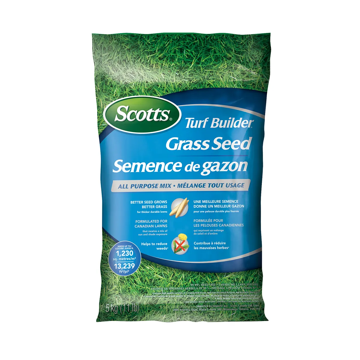 To make a good lawn better; start with a high quality seed that grows a thick; green lawn. Scotts® Turf Builder® all purpose mix. Formulated with high-quality seed varieties; including turf-type Kentucky bluegrass; this all-purpose mix is filtered 3 times to remove weeds and fillers for a 99.99% weed-free guarantee. Ideal for lawns that get a mix of sun and shade and can be applied in the Spring or Fall for a thicker; durable lawn that helps reduce weeds* Now; that’s a better way to seed and overseed.