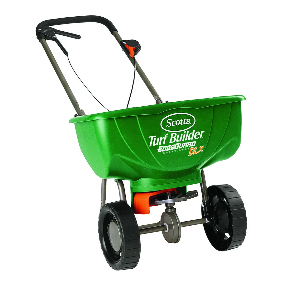 Calibrated and ready to use Spread product efficiently and effectively with Scotts® Turf Builder® EdgeGuard® DLX broadcast spreader. Equipped with Scotts® exclusive EdgeGuard® technology; you can trust that the product you spread will be spread accurately. You can even control the panel’s precision rate setting to deliver more accurate coverage on up to 15000 sq. ft. The Scotts® Turf Builder® EdgeGuard® DLX Broadcast Spreader comes calibrated and ready to use; so you can get started right away.