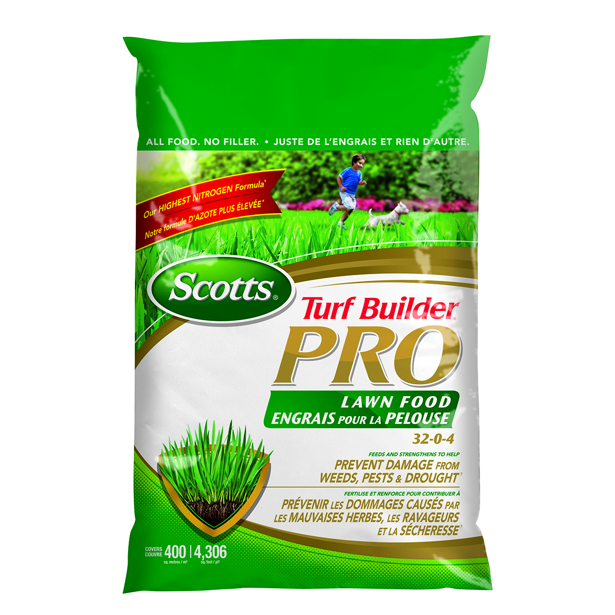 Help your lawn withstand the stress of weeds; pests and drought with the help of Scotts® Turf Builder® Pro lawn food 32-0-4. Scotts® all-in-one Particles® toughen up root systems in preparation for whatever the environment may send its way. The result: a gloriously thick and healthy lawn.