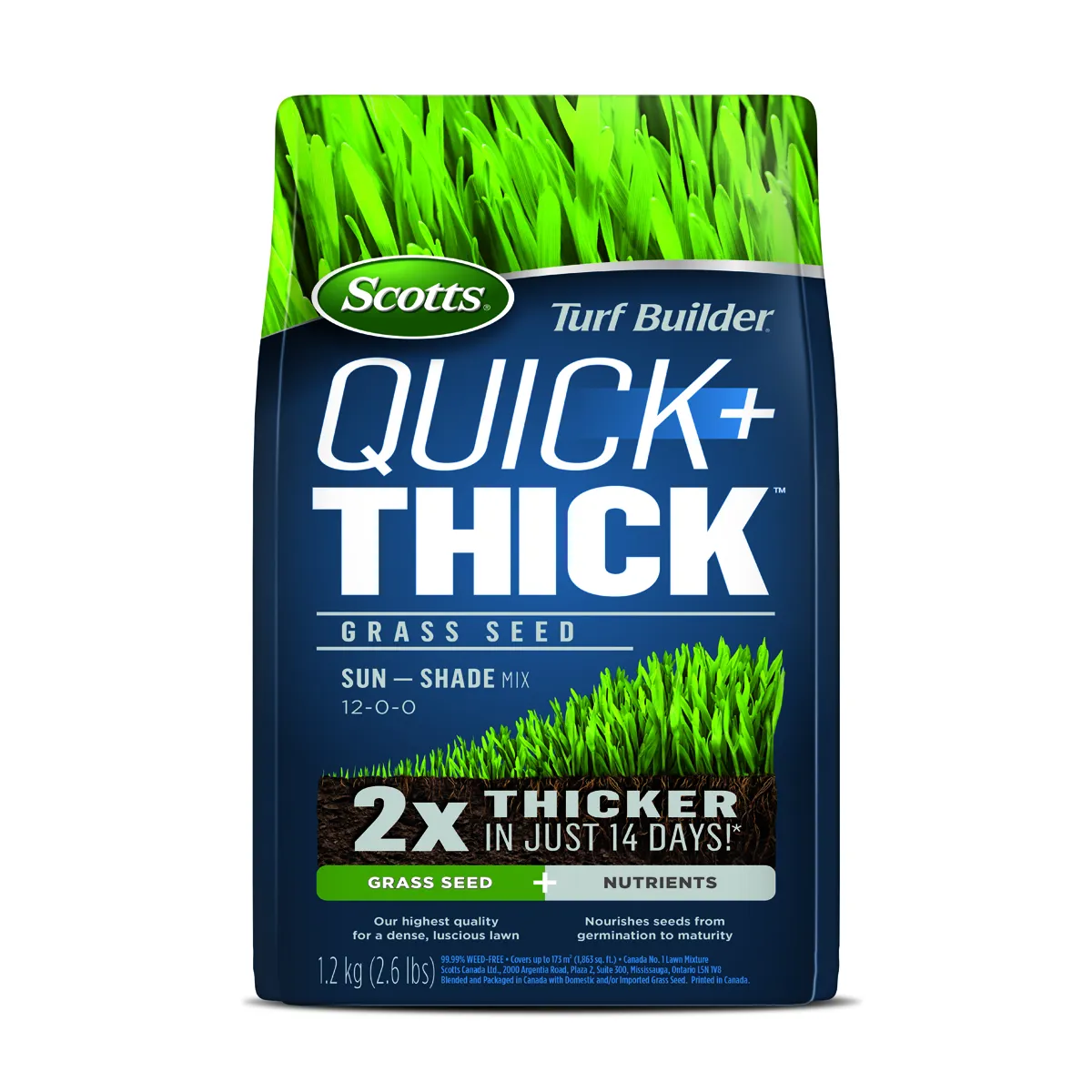 Even if your yard is the fickle sort with varying degrees of sun and shade; you can grow a dense and luscious lawn fast. Scotts® Turf Builder® quick + thick grass seed sun.