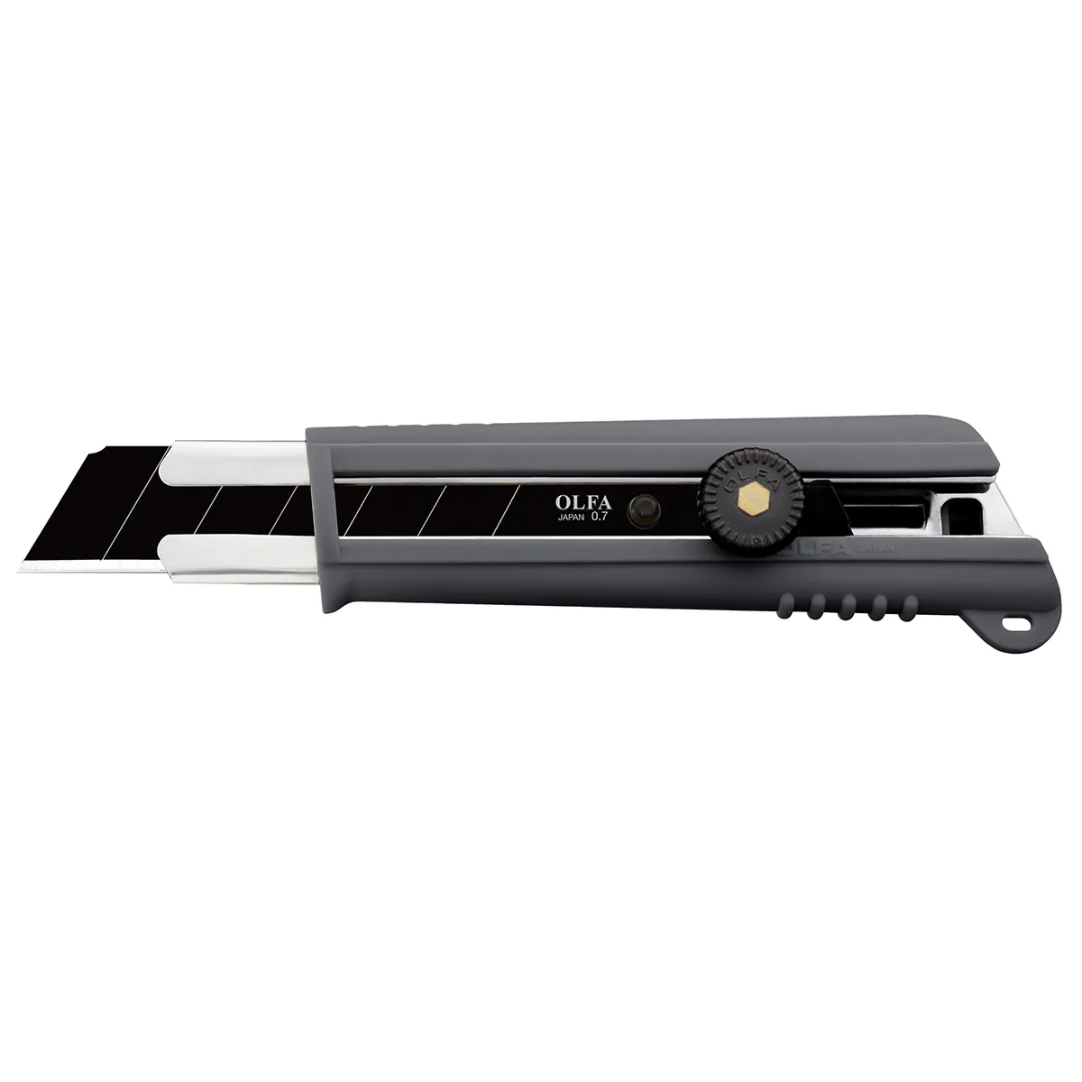 You won't be able to resist this OLFA® utility knife; with its’ chemical-resistant handle. And you won't believe how easy it is to use — one-hand blade changing and more — until you actually put it to use. This knife can cut industrial materials such as gaskets; conduit; belt synthetics; rope; leather; laminates; plastics; fiberglass; rubber and textiles.