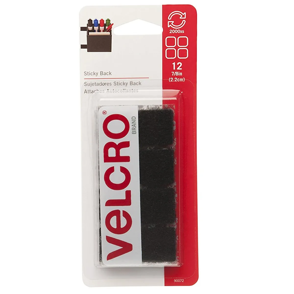 Velcro® sticky back 7/8 in black square fasteners to organize and customize your displays; storage; or desk. These versatile fasteners are ideal for use on smooth surfaces and can help you to clear the clutter from your workspace. Confidently secure labels to highlight your specials; hang pictures or small displays and menus; or secure items on your desk. With a simple peel and stick application these fasteners are easy to use. These fasteners are also a good tool for classroom projects and crafts.