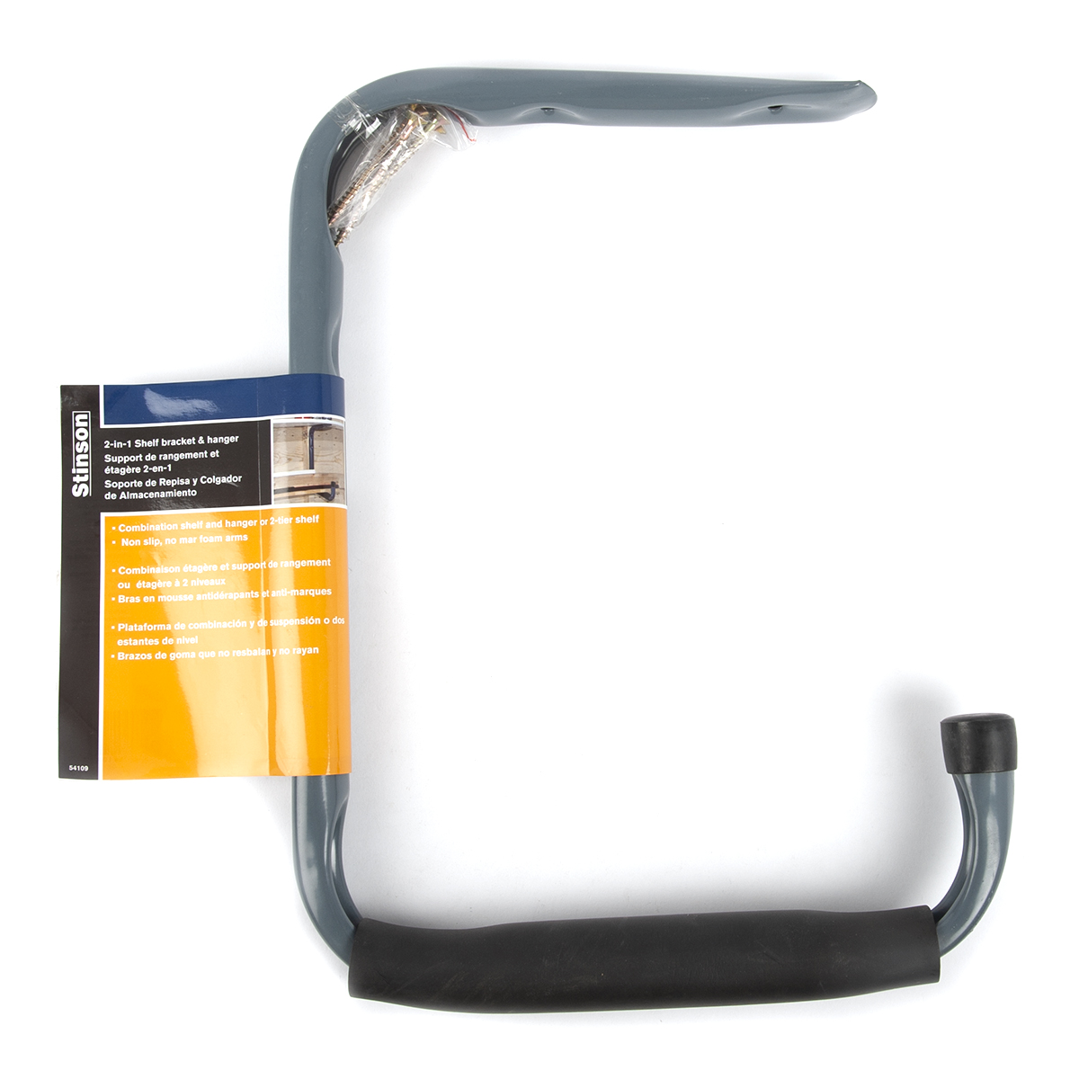 Supports: Up to 50 lbs Use with two-tier 8 in to 10 in shelf bracket. Make combination shelf bracket and hanger. No-mar foam sleeves protect valuable items. Mounting hardware included. Supports: Up to 50 lbs.