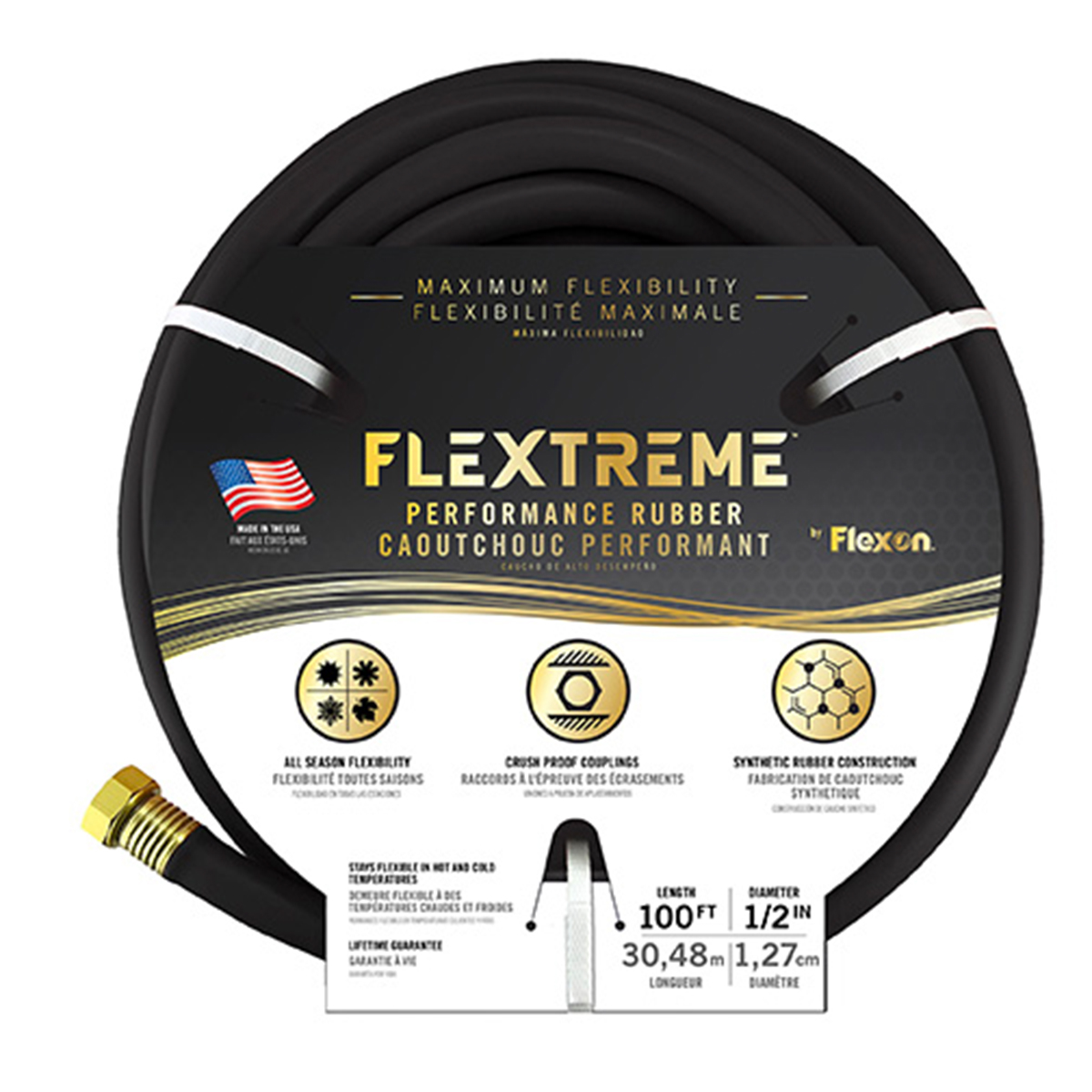 >>Flextreme™ Performance Rubber hoses are constructed of lightweight, synthetic rubber making them much easier to use than heavy rubber hoses. They also maintain maximum flexibility all year around making them the ideal hoses for both residential and professional applications.