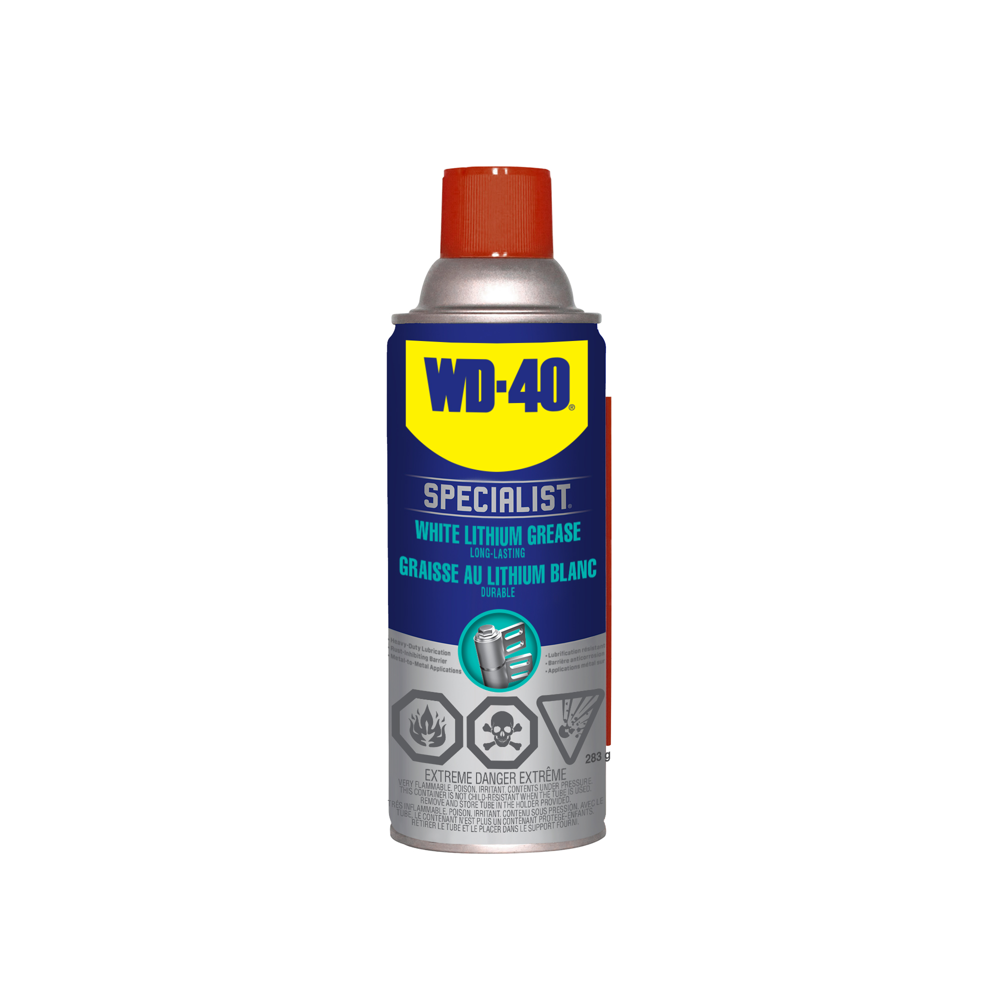 WD-40 Specialist High Performance White Lithium Grease won't run off; long lasting lubrication and rust inhibiting barrier.