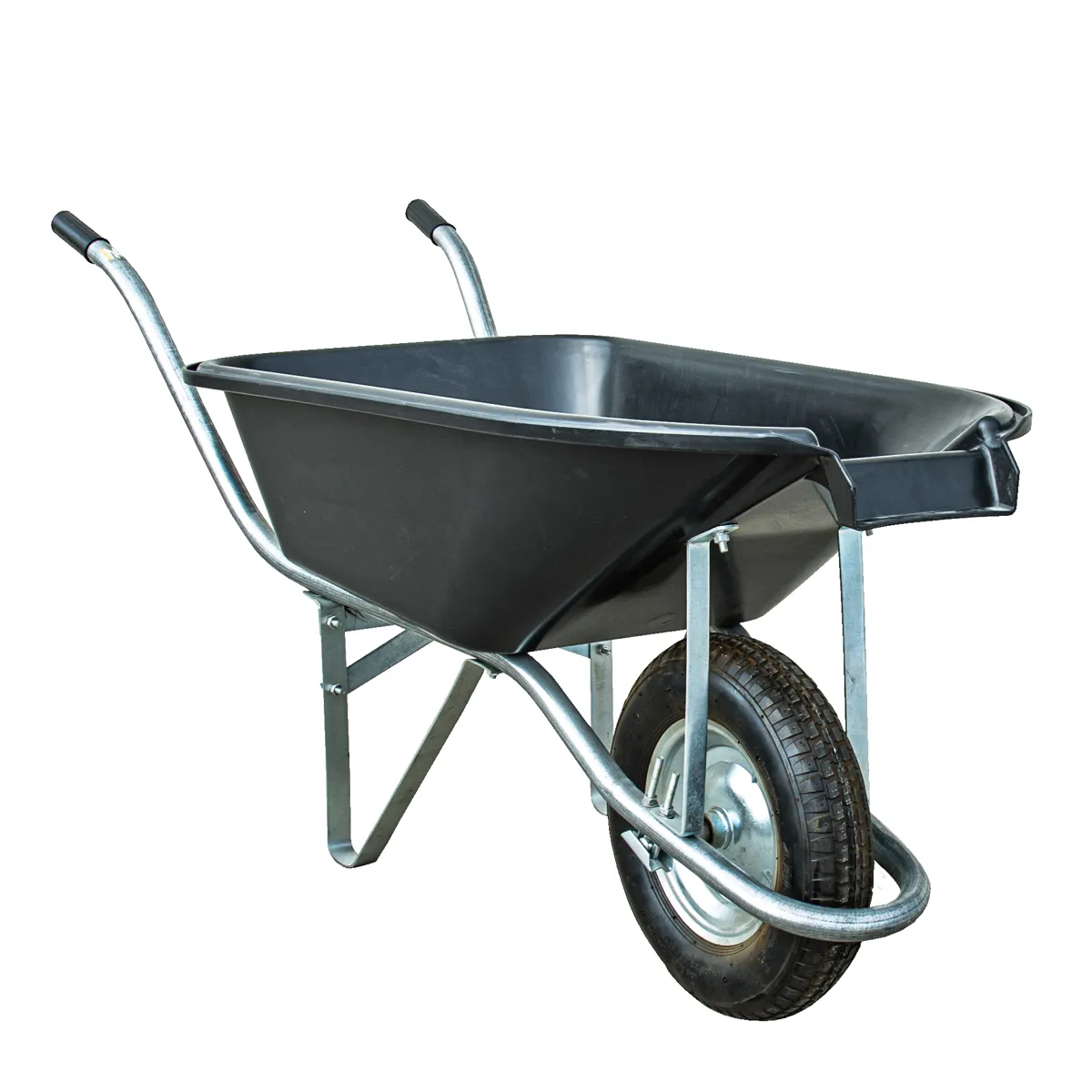 The Pro-Yard EZ Pour Wheelbarrow features a 6 ft rugged Poly tray and Steel handles making it extremely tough and durable. Perfect for any backyard or work site, it is also designed with a narrow spout making the pouring of material quick and easy while reducing spillage and waste. Wheelbarrow also comes equipped with Pneumatic tire reducing vibrations and hand fatigue when transporting materials.