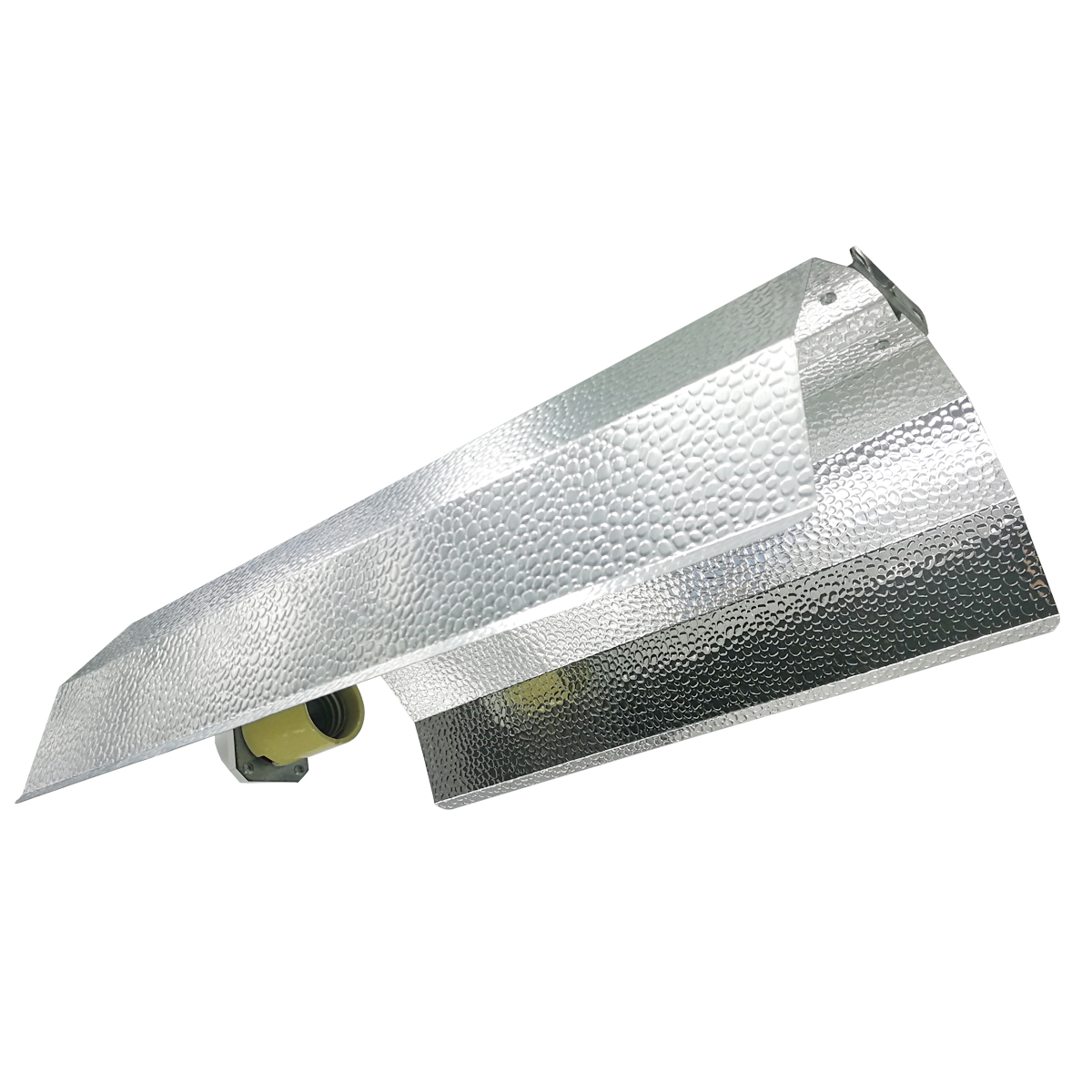 Pro-Yard Hydro wing reflectors features a shroud made from top grade aluminum and engineered for 95% reflective efficiency. Constructed with a generous 15' Of heavy duty power cord and equipped with an E39 ceramic mogul socket and standard hydroponic soft-plug suitable for both HPS and MH lamps but can be converted to accomodate E39 CFL lamps with the optional 182503 adaptor. This 48cm/19" Reflector provides light coverage of up to 1.2SQM/4Sqft.