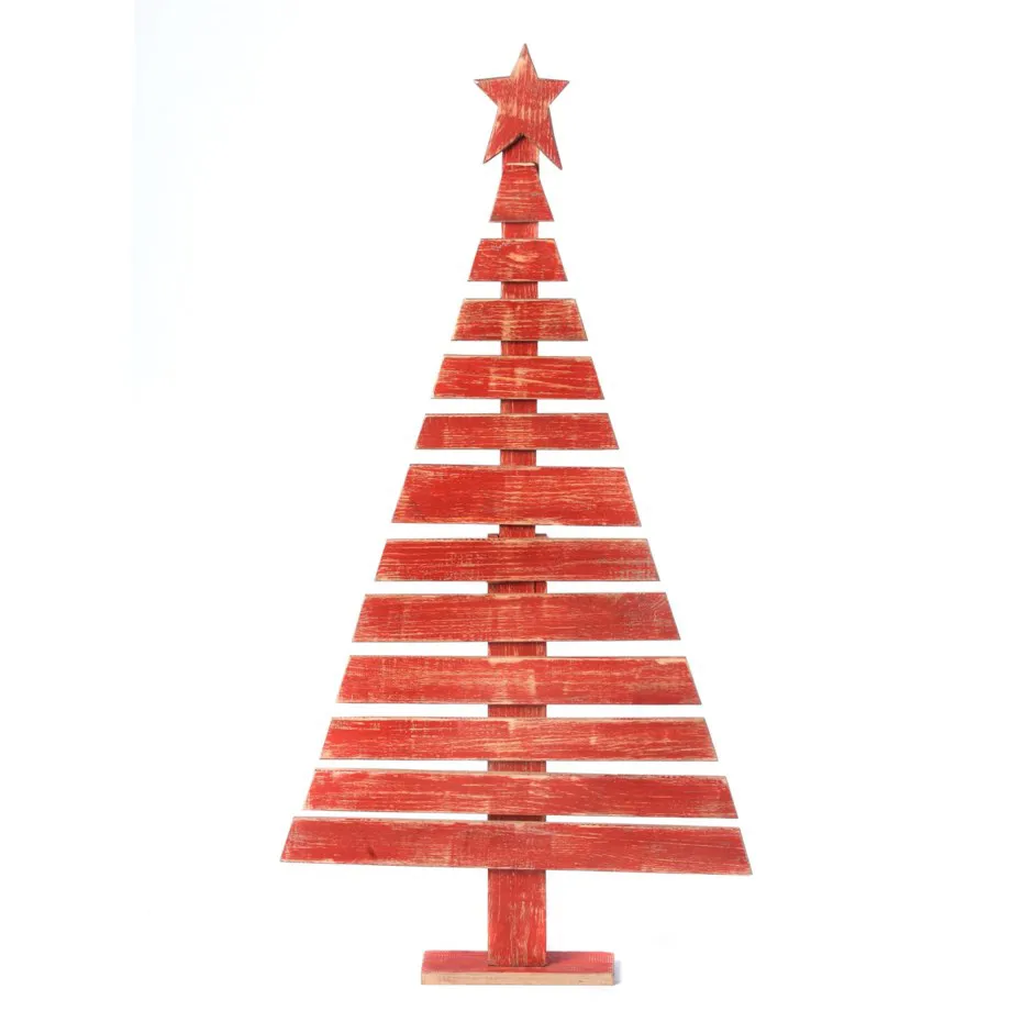 Wooden Tabletop Christmas Tree 49in Hand Painted Red