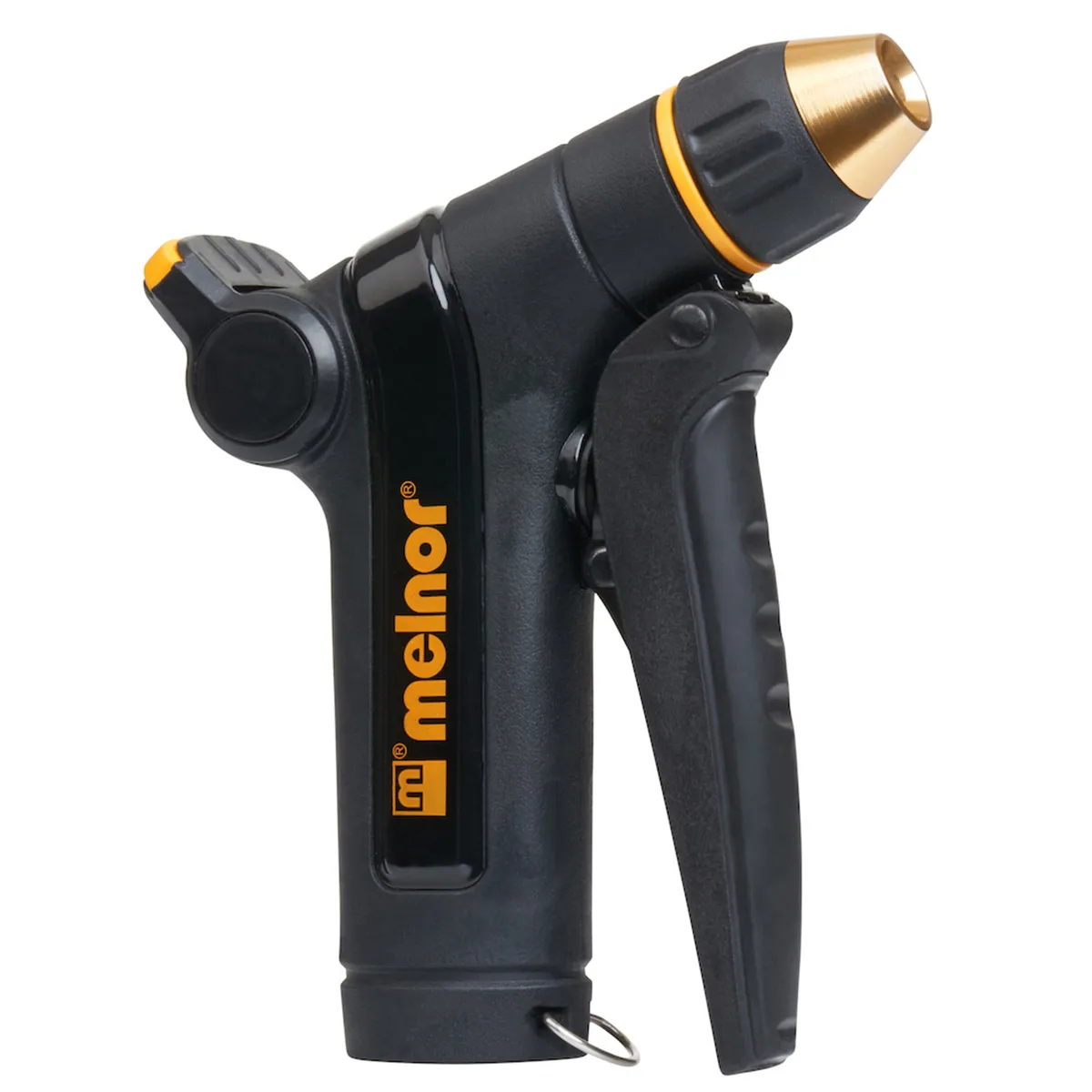 • Gently water the garden or spray off the deck with this versatile nozzle that adjusts from a fine shower to a powerful jet. Control the amount of water you need in one easy motion with the thumb control flow lever. Melnor XT Nozzles are built with a metal core for durability you can count on.